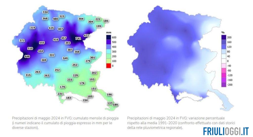 Maggio 2024, caduto il 200% di pioggia in più sul Friuli.