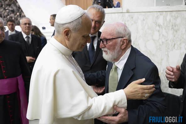Un abbraccio e un dono che parlano di pace e arte friulana: il Maestro udinese Giorgio Celiberti ha consegnato personalmente al Papa Leone XIV la sua opera “Preghiera di Pace”, in occasione del 70° compleanno del Pontefice. L’incontro, avvenuto il 10 settembre al termine dell’Udienza Generale del mercoledì, ha unito emozione, spiritualità e il talento di uno degli artisti più importanti del Friuli.