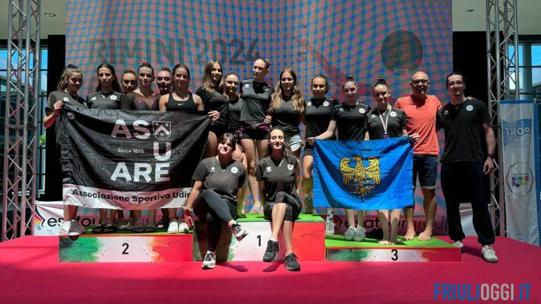Continuano a incassare successi le atlete della ginnastica artistica femminile e della ritmica di casa ASU – Associazione Sportiva Udinese. Dopo le trenta medaglie conquistate ai campionati nazionali CSEN (assieme ai compagni della maschile) le atlete bianconere sono rientrate dalle Finali Nazionali di Ginnastica in Festa di Rimini con ben 17 titoli nazionali.