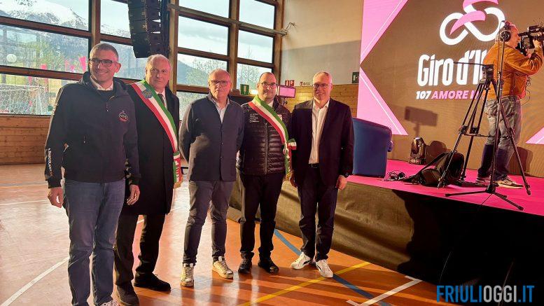Al Villaggio Bella Italia di Piani di Luzza, ieri sera si è svolta la presentazione della 19a tappa del Giro d’Italia – la Mortegliano-Sappada (157 km, dislivello 2850 metri) in programma venerdì 24 maggio. utrita presenza di autorità, tra cui il presidente del Consiglio regionale Mauro Bordin, l’assessore regionale alle Autonomie locali Pierpaolo Roberti, i sindaci Mauro Piller Hoffer (Sappada) e Roberto Zuliani (Mortegliano), il presidente del Comitato di tappa Paolo Urbani e la famiglia di Enzo Cainero.
