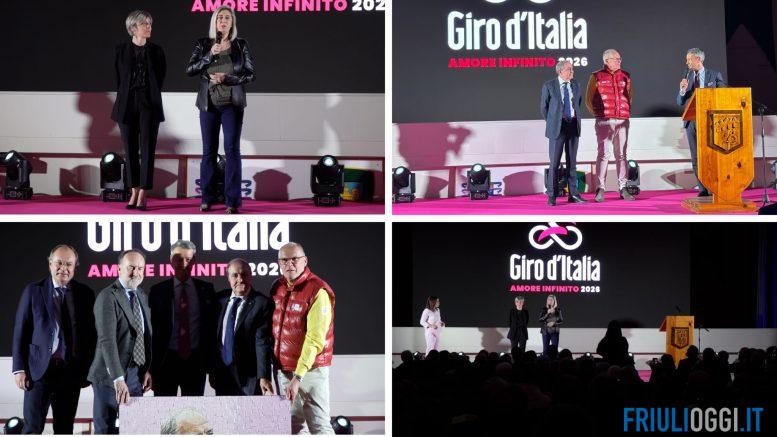 Durante la serata, il presidente del Comitato locale di tappa Paolo Urbani ha illustrato nel dettaglio il percorso di 200 chilometri e 3.900 metri di dislivello, mentre il portavoce della Regione, Edoardo Petiziol, ha consegnato un premio alla carriera a Mauro Vegni, storico direttore del Giro. Insieme hanno ricordato la visione di Enzo Cainero, la cui eredità continua a vivere in un evento che vede la partecipazione corale di Protezione Civile, volontari e istituzioni locali