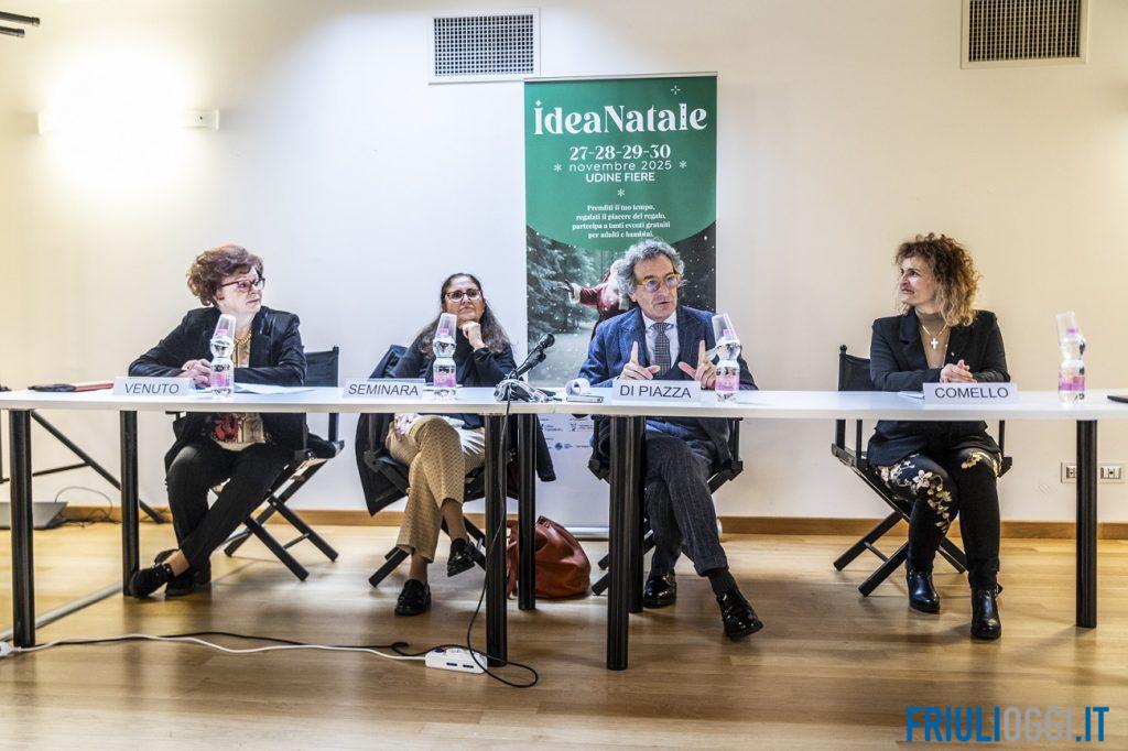 A presentare alla stampa l’edizione 2025 di Ideanatale nel corso della conferenza di oggi è stato il Presidente di Udine Esposizioni, Antonio Di Piazza, insieme alle istituzioni che sostengono la manifestazione – in primis la Regione con IoSonoFVG – condividendone contenuti e obiettivi: la Camera di Commercio di Pordenone – Udine con Eva Seminara, componente della giunta, la Fondazione Friuli con Francesca Venuto, in rappresentanza del CdA,e Confartigianato – Imprese Udine, con la Vice Presidente Francesca Comello.