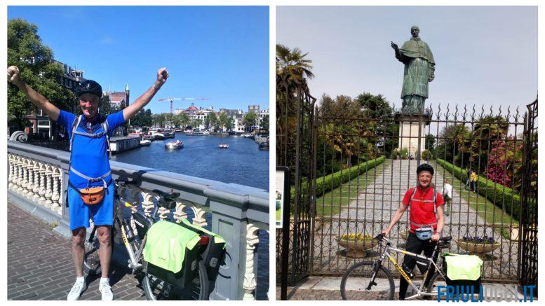 Nel 2020, nonostante il periodo pandemico, in due settimane percorre la Sardegna, arrivando e ripartendo da Olbia con il traghetto. Ad aprile 2021 è la volta della Campania, dove ha avuto anche un piccolo infortunio, senza gravi conseguenze ” Stavo percorrendo una strada in discesa, sulla fantastica Costiera Amalfitana, quando dall’altra parte un’auto, per schivare la portiera di un altro veicolo, mi ha mandato fuori strada – racconta – sono arrivati subito i soccorsi che mi hanno medicato sul posto e me la sono cavata con qualche sbucciatura ed una ruota bucata”. A settembre dello stesso anno si avventura in Emilia Romagna, con lo stesso identico entusiasmo che ha caratterizzato anche l’ultima impresa, a giugno dell’ anno scorso, quella che lo ha visto partire dalla sua Latisana per poi arrivare fino ad Amsterdam, dove si è fermato tre giorni per ammirare musei, luoghi caratteristici e monumenti storici ( come quello di Anna Frank).