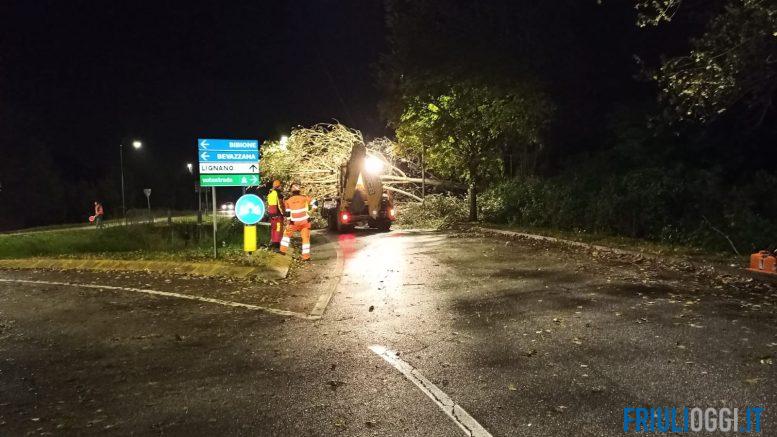 Altre piante sono crollate sulla carreggiata della ex sp 40, strada “Ferrata”, all’altezza di Cordovado, e sulla SS14 all’altezza di San Michele al Tagliamento. A Flaibano, sulla ex sp 60, è caduto un palo della luce. A Torviscosa un principio di incendio ha interessato una cabina elettrica che ha provocato un breve blackout alle abitazioni limitrofe (guasto risolto) mentre a Grado, il vento forte ha fatto cadere la vetrina di un negozio.