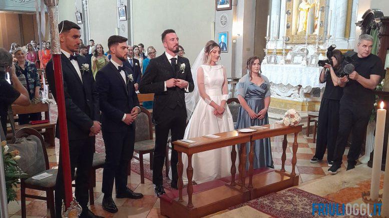 Matrimonio vip in Friuli, quello celebrato tra il portiere dell’Empoli Samuele Perisan e la pallavolista Melissa Fantino. L’unione tra i due sportivi si è celebrata nella chiesa di Santa Maria di Sclaunicco, alla presenza, tra gli altri, del portiere del Napoli e della nazionale Alex Meret, udinese di nascita, e di un altro portiere di Udine, Simone Scuffet, attualmente al Cluj.