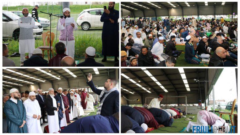 La comunità mussulmana del Friuli festeggia l’Eid al Fitr, una giornata sacra che segue la conclusione del Ramadan. Sono stati circa 3.000 i fedeli si sono riuniti questa mattina nel campo di calcetto di Cussignacco per celebrare questa importante festa per la preghiera mattutina accompagnati dall’imam.