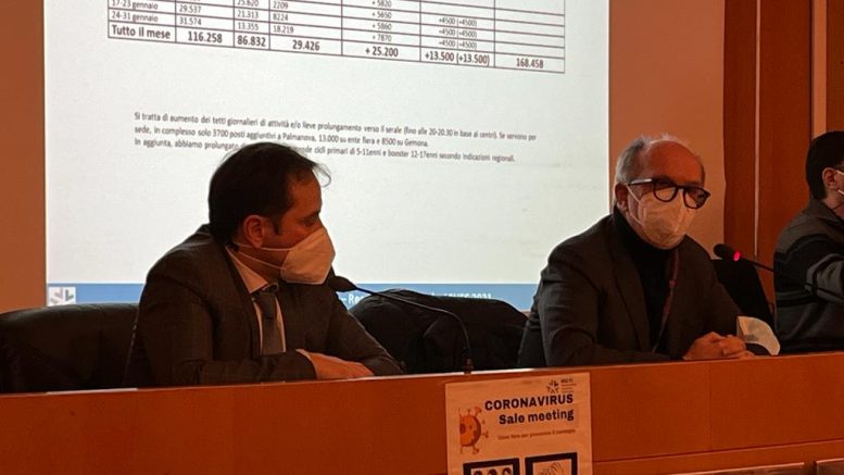 L’agenda per la prenotazione vaccinale a gennaio si attesta a una disponibilità di 116.258 posti di cui già prenotati al 31 dicembre 86.832 soltanto in Asufc. Alla disponibilità residua di 29.426 posti se ne sono aggiunti 25.200 all’ente Fiera di Martignacco, al centro Manifatture di Gemona del Friuli e all’ospedale di Palmanova oltre agli allestimenti temporanei (13.500) che portano ad un potenziale massimo di 168.458