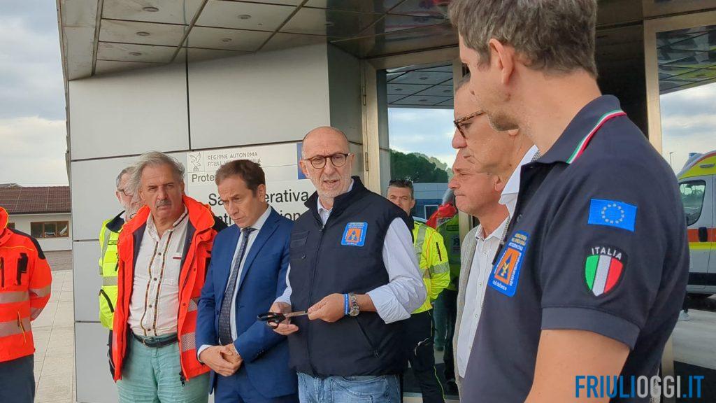 Presenti i direttori delle tre aziende sanitarie, Denis Caporale (AsuFc), Giuseppe Tonutti (Asfo), Antonio Poggiana (AsuGi), e il direttore della Struttura operativa regionale emergenza Sanitaria (Sores) Amato De Monte, oltre ai funzionari della Protezione civile del Friuli Venezia Giulia.