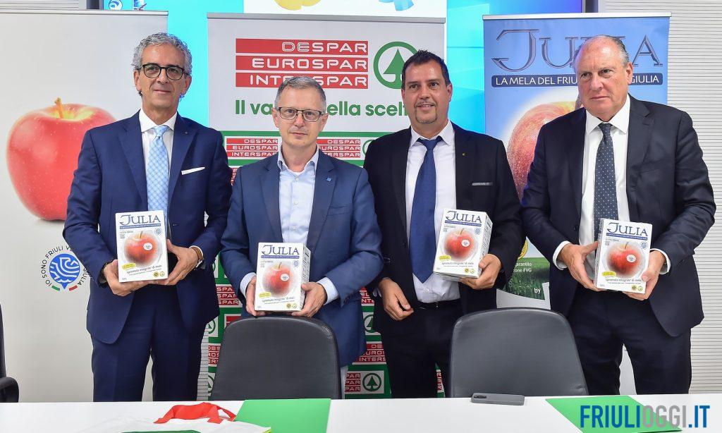 La terribile grandinata del 24 luglio ha danneggiato seriamente le coltivazioni di mele nel comune di Mortegliano, epicentro di quel disastro. Danni non solo a un raccolto che si preannunciava eccezionale, ma soprattutto agli impianti, alle piante e alle strutture agricole. Ora, quelle mele diventeranno una spremuta di alta qualità: dal 19 ottobre è disponibile in tutti i punti vendita Despar in Friuli-Venezia Giulia la “Spremuta integrale di mela Julia”, nata dalla collaborazione solidale tra Aspiag Service Despar e l’azienda agricola Pomis.