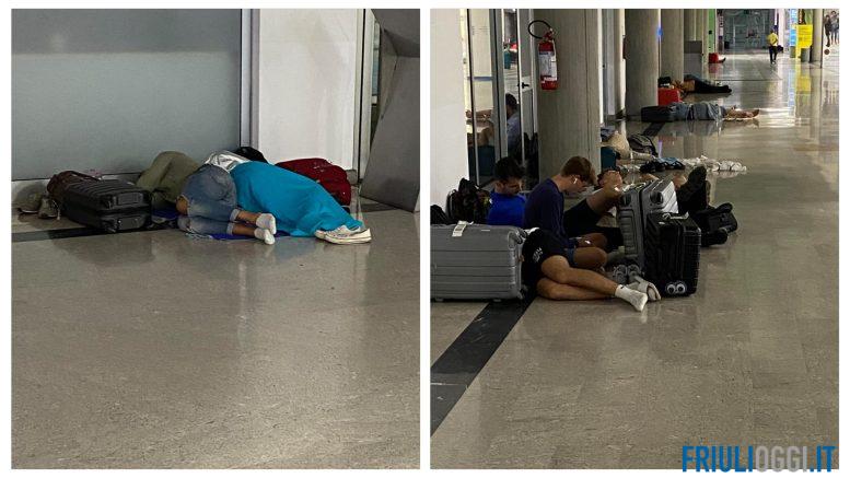 Il disagio continua nelle ore successive: alla richiesta di accendere l’aria condizionata, è risultato che non funzionava; a quella di distribuire l’acqua, che il personale presente non poteva decidere. “A mezzanotte e mezza mi hanno ascoltato – continua il friulano -: voucher da 4 euro. Alle 2, vedo in lontananza bottiglie di acqua minerale sul pavimento. Veniamo informati che dobbiamo passare la notte in aeroporto. Alcuni passeggeri gridano arrabbiati. Scappa qualche insulto, l’atmosfera diventa particolarmente tesa. Poi ci informano che forse ci sistemano in un hotel e gli animi si calmano. Il personale dell’aeroporto prende giù i nomi per organizzare il tutto”.
