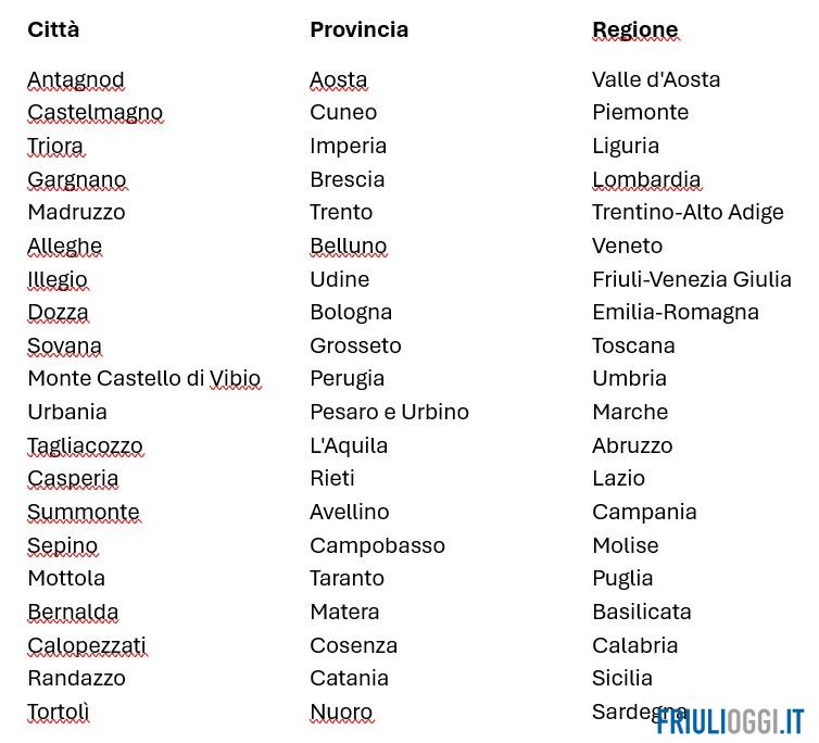 La selezione non è una classifica, ma un invito al viaggio verso mete alternative e sorprendenti. Per l’edizione 2026, il team editoriale ha setacciato l’Italia dalle vette alpine alle coste del sud, includendo nel “Grand Tour” anche il borgo carnico di Illegio.