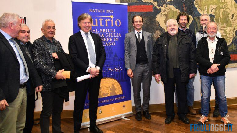 E’ stato presentato oggi il presepe di Sutrio che da sabato 3 dicembre all’Epifania sarà esposto in piazza San Pietro a Roma per le festività natalizie. Il Presepe del Natale 2022 in Vaticano, realizzato da un team di artisti ed artigiani del legno che da decenni sono attivi sul territorio, rappresenta la natività a grandezza naturale, scolpita in grossi tronchi di legno di cedro e sarà inaugurato alle 17 di sabato, dopo che in mattinata una delegazione del Friuli Venezia Giulia, guidata dal governatore Fedriga, sarà stata ricevuta dal Santo Padre in Vaticano.
