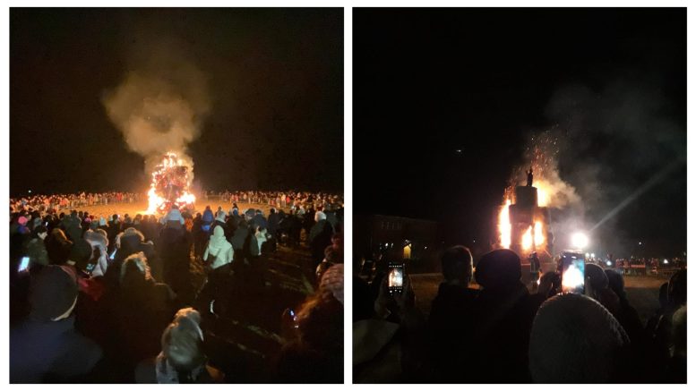 La serata ha seguito il rituale atteso: il fumo, spinto verso sud, ha confermato un responso positivo per l’anno futuro, secondo la lettura di “Re Codrop”, figura simbolica della manifestazione.