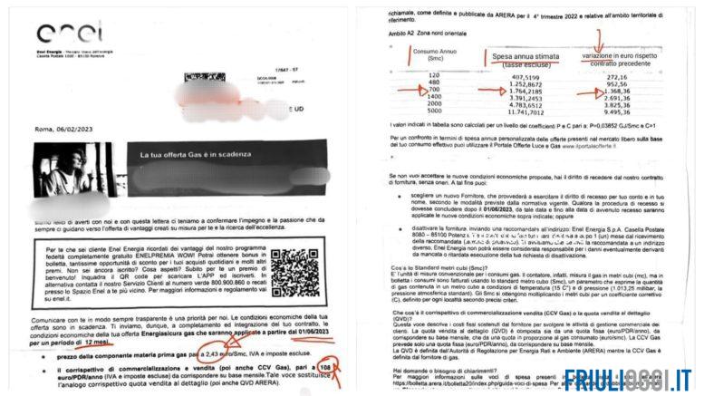 Amara sorpresa per un friulano: con il contratto del gas in scadenza, gli è stata recapitata la nuova offerta del fornitore, ma è un vero e proprio salasso.