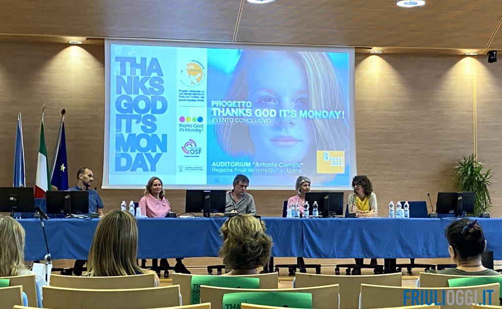La scuola come una grande famiglia, in Friuli prende forma una nuova accoglienza per gli studenti. Si è infatti svolto a Udine, presso l’Auditorium regionale “A. Comelli”, il Convegno conclusivo di Thanks God it’s Monday!, progetto finanziato dall’organizzazione Con i Bambini, soggetto attuatore del Fondo per il contrasto della povertà educativa minorile che ha permesso, nel corso degli ultimi quattro anni, di promuovere presso le Scuole Secondarie di I grado e i Centri di Formazione della regione FVG il benessere a scuola. Obiettivo delle attività sviluppare nei giovani e nelle famiglie il senso di appartenenza alla comunità, favorendo la possibilità di apprendere, sperimentare e sviluppare talenti e aspirazioni e rendendo gli spazi educativi maggiormente accoglienti, gratificanti e tali da suscitare negli adolescenti un sentimento di appartenenza.