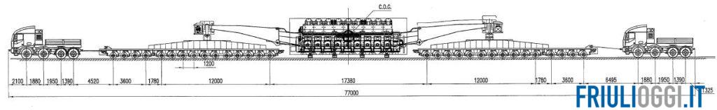 La ditta di logistica Fagioli spa, infatti, effettuerà il trasporto di un motore del peso di oltre 200 tonnellate destinato ad una centrale elettrica in costruzione nella provincia di Gorizia; ad essere da record sarà il convoglio che avrà ben 77 metri di lunghezza e peserà 470 tonnellate.