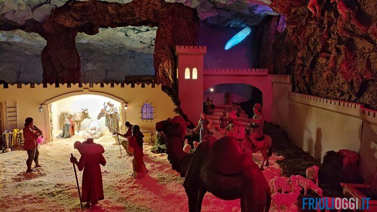 Una parte importante di esso è costituita da pregevoli statuine intagliate nel legno che risalgono alla fine dell’Ottocento e che facevano parte di un’opera presepiale che fino agli anni Cinquanta veniva allestita nella chiesa di Santa Maria di Fossale. Per ammirarlo è necessario ‘fracâ il boton’ (premere il pulsante), così da entrare nell’atmosfera della Natività, con i giochi di luce che scandiscono le varie fasi della giornata, accompagnati dai suoni tipici dell’ambiente domestico e da un piacevole sottofondo musicale. Il tutto governato da un computer che regola la successione degli effetti e dei momenti temporali.