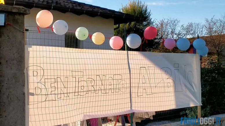“Ieri (domenica, ndr) finalmente dopo 4 mesi Alberto è riuscito ad avere il permesso di venir a casa in giornata – ha scritto -, ad accoglierlo lo striscione fatto dagli amici che sono sempre presenti. Un ringraziamento al panificio Strizzolo per aver regalato la torta di bentornato e al nostro sindaco Ivan Boemo per essere passato a salutarlo. Ringraziamo anche la munus e i volontari. Grazie alla comunità che si è unita a noi. Gonars è il top”.