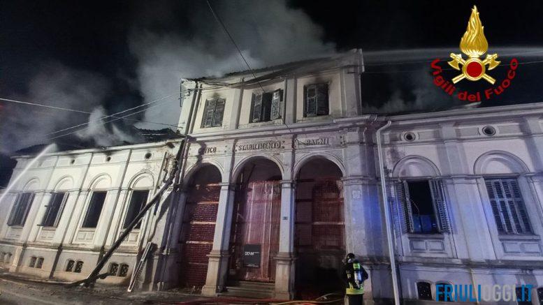 Nella tarda serata del 5 novembre 2024, intorno alle 23.50, un incendio di vaste proporzioni ha colpito un edificio abbandonato in Via Cadorna, a Gorizia, un tempo utilizzato come bagni pubblici. Le fiamme, già fuori controllo al momento dell’arrivo dei Vigili del fuoco, si sono propagate rapidamente, alzandosi in alte colonne visibili anche a distanza.