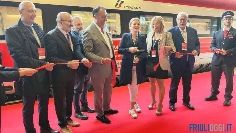 Questa mattina nella stazione cittadina, Rodolfo Ziberna, sindaco di Gorizia, Caterina Belletti, del Consiglio di Amministrazione di Ferrovie dello Stato Italiane e Pietro Diamantini, Direttore Business Alta Velocità Trenitalia, hanno illustrato le caratteristiche del nuovo collegamento diretto.