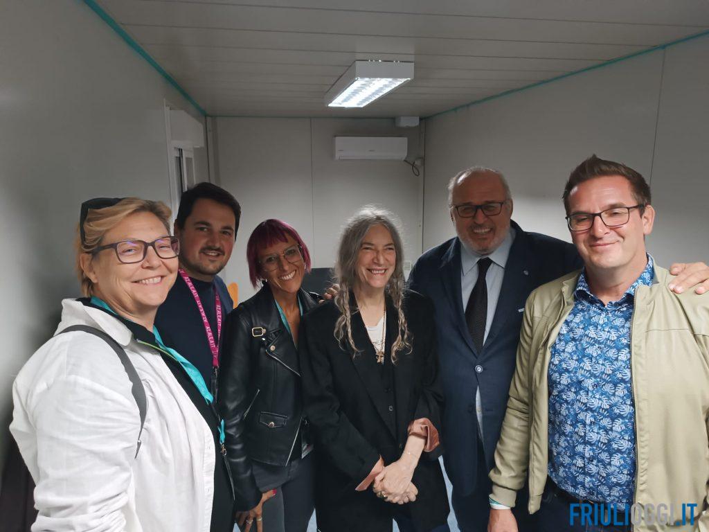 Ziberna e Turel, alla fine del concerto, hanno incontrato le due cantanti e a Patty Smith, il sindaco di Gorizia, ha regalato la copia della Divina commedia in miniatura realizzata nel 1888 dal tipografo goriziano. “Stringere la mano a un mito del rock come Patti Smith è stato davvero emozionante ma già prima lo era, a vedere migliaia di persone cantare e muoversi al ritmo della sua musica. Credo davvero che questo concerto abbia, di fatto, acceso i motori di Go!2025, facendo finalmente esplodere l’entusiasmo che deve accompagnare questa manifestazione. Grazie a Patti Smith ma grazie anche a Elisa, per questo cammeo che ci ha regalato. La coinvolgeremo senz’altro negli eventi futuri”.