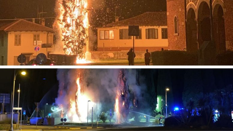 Gli incendi a dei cipressi secolari a Monfalcone e Lucinico.