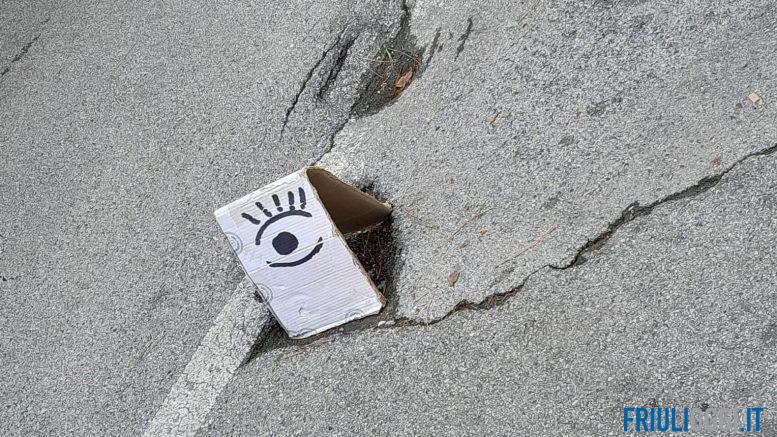 Avrà pure perso il suo fascino di vip illibata, Chiara Ferragni, in coppia con Fedez, ma quell’occhione disegnato, simbolo della sua ascesa fashion, è ancora più che riconoscibile. Fa così sorridere vederlo utilizzato a Grado, nella via che porta al mercato settimanale, per indicare agli automobilisti una buca sulla strada, che da troppo tempo aspetta di essere tappata. Un cartello artigianale con stile, che non è passato inosservato ai tanti.