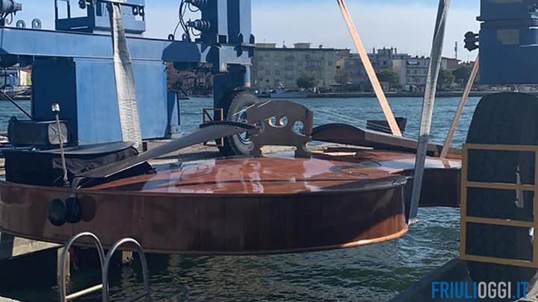 Grado è stata scelta come prima location, ad eccezione ovviamente di Venezia, nella quale poter ammirare il violino, che è dotato di un motore fuoribordo elettrico e pesa circa una tonnellata.