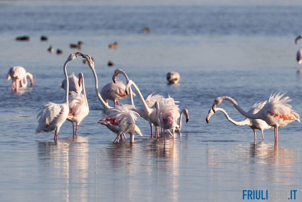 Un ritorno che accende il rosa tra le barene e i canneti: la laguna di Grado ospita in queste settimane uno degli stormi svernanti più numerosi dell’Alto Adriatico. Sono oltre mille i fenicotteri che sono tornati a popolare la Riserva Naturale Valle Cavanata, offrendo un colpo d’occhio straordinario a chi percorre l’itinerario della ciclabile FVG 2.