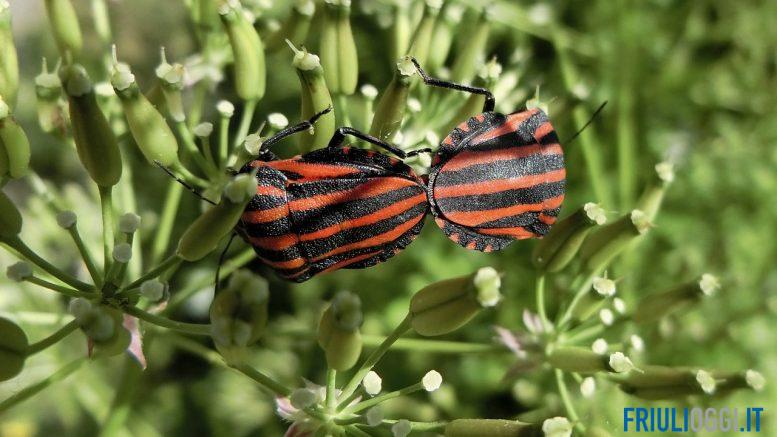 I colori di questo insetto non sono pensati per mimetizzarsi tra le foglie delle piante ma rappresentano un’arma di difesa, che punta a scoraggiare gli eventuali predatori. Altra arma di difesa comune a molte cimici è il cattivo odore che emana quando si sente in pericolo o viene schiacciata. La fonte della puzza delle cimici sono delle ghiandole posizionate sull’addome che vengono utilizzate dall’insetto anche per comunicare con i simili o per cacciare.