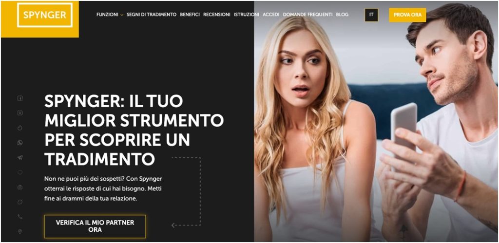 Spynger è un’app per scoprire tradimento pensata per chi ha bisogno di discrezione assoluta. Funziona senza essere visibile sull’apparecchio monitorato. L’applicazione consente di vedere gli SMS inviati e ricevuti, le email e le chiamate fatte o ricevute, oltre all’attività social.