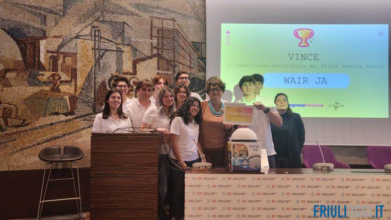 La mini-impresa Wair creata dagli studenti del Malignani di Cervignano e prima classificata alla sfida di “Impresa in Azione” per il Friuli Venezia Giulia, è stata selezionata tra i 10 progetti finalisti nella competizione nazionale (alla quale ha preso parte anche lo Zanon con la mini-impresa SiSteam) e ha potuto così presentare il proprio progetto alla platea italiana.