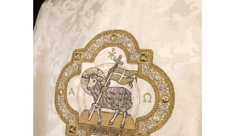 L’ornamento pasquale, tipicamente bianco o dorato, è l’abito principale indossato dal sacerdote durante la Messa. Spesso è decorato con simboli pasquali come l’Agnello di Dio (Agnus Dei), la croce risorta, il sole nascente o il monogramma di Cristo (IHS). Questi simboli richiamano la risurrezione di Gesù e la sua vittoria sulla morte. L’ornamento pasquale è un segno visibile della solennità della celebrazione e della presenza di Cristo risorto in mezzo al suo popolo.