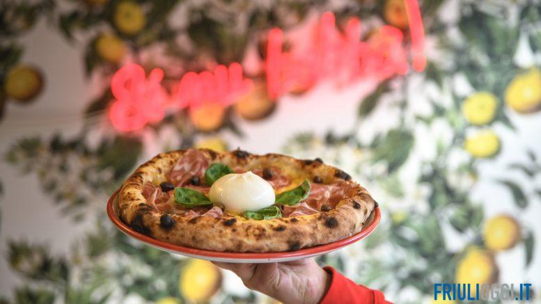 La Pizza “Friuli Venezia Giulia”, ha una base Margherita con aggiunta di Prosciutto crudo San Daniele DOP e scaglie di Montasio DOP. Le scaglie di Montasio aggiunte sopra la pizza al momento del servizio offrono un contrasto di sapori e texture, con note leggermente piccanti che si sposano armoniosamente con la dolcezza del prosciutto e l’acidità dei pomodori. La pizza “Friuli Venezia Giulia” è quindi non solo un piatto, ma un viaggio attraverso i sapori distintivi della regione, unendo ingredienti di alta qualità che celebrano l’identità culinaria del Friuli Venezia Giulia e la maestria di Pizzium nell’interpretare i prodotti del territorio in chiave moderna: una vera e propria esperienza culinaria che invita alla scoperta e all’apprezzamento delle diverse sfumature del patrimonio gastronomico italiano.