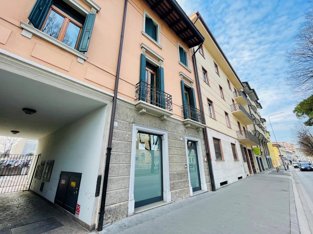 Udine via Crispi, di fronte al tribunale, ufficio di 70 mq posto al piano terra (70mq) così composto: zona reception, due uffici e bagno finestrato. Nel piano interrato stanza unica di 30mq. Termoautonomo, ottime finiture e posto auto scoperto di proprietà . Classe en D. Canone r…