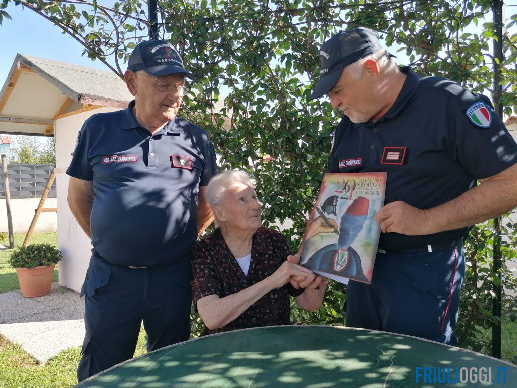 Non sono mancati dolci e un buon prosecco e alla signora Luigia è stato consegnato il calendario dell’Arma dei carabinieri insieme ad un “cadeaux” relativo alla inaugurazione del primo monumento in Italia dedicato ai corazzieri eretto in Muzzana del Turgnano, cui la sezione Anc è stata parte protagonista.
