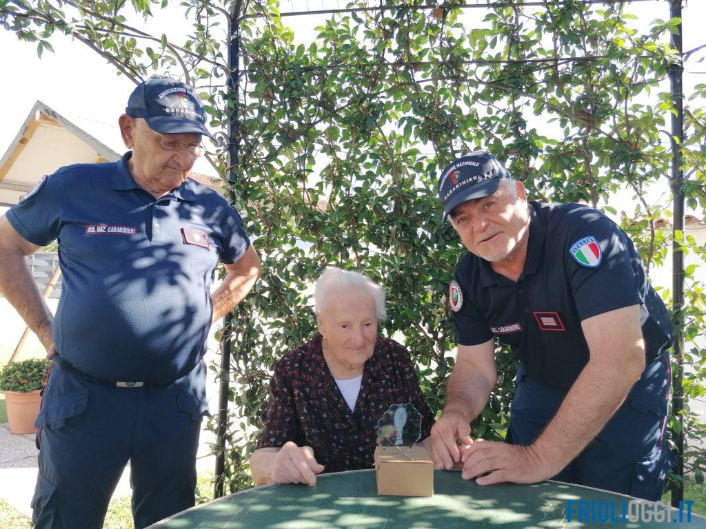 Non sono mancati dolci e un buon prosecco e alla signora Luigia è stato consegnato il calendario dell’Arma dei carabinieri insieme ad un “cadeaux” relativo alla inaugurazione del primo monumento in Italia dedicato ai corazzieri eretto in Muzzana del Turgnano, cui la sezione Anc è stata parte protagonista.