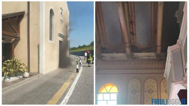 Un forte incendio è divampato nel pomeriggio di oggi, lunedì 19 giugno, nella chiesa Beata Vergine delle Grazie, in zona Sabbionera di Latisana, dietro l’ospedale.