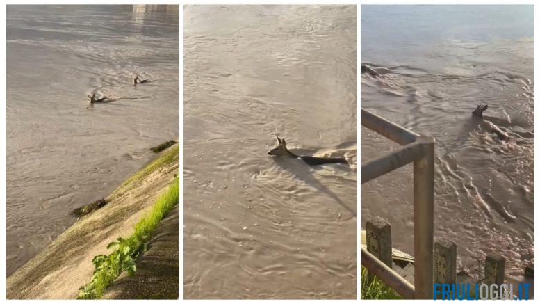 Caprioli e altri animali sono finiti nel Tagliamento in piena.