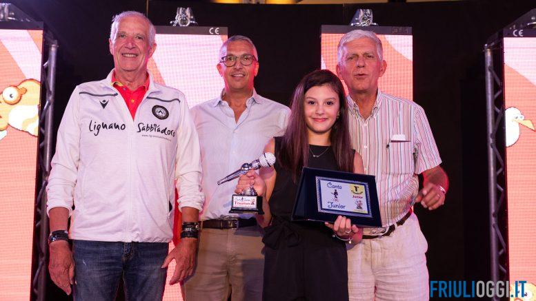 Sul palco per premiare e complimentarsi con tutti i concorrenti, sono intervenuti: Mario Andretta e Gionata Lanza, rispettivamente titolare e gestore del “Parco Junior”, Marco Andretta e Luca Lanza, il Sindaco di Lignano Sabbiadoro Laura Giorgi e i consiglieri del Comune, con delega al turismo Massimo Brini e Donatella Pasquin con delega alla cultura. Alle vincitrici Matilde Giselle e Martina sono state assegnate anche due borse di studio messe in palio dal Parco Junior per un concreto aiuto per l’approfondimento e lo studio del canto.