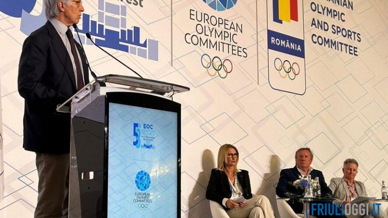 Ai rappresentanti dei Comitati Olimpici di tutta Europa il sindaco, nel suo intervento, ha voluto ricordato con orgoglio l’appuntamento con le Olimpiadi di Parigi che attende, assieme alle compagne di squadra del canottaggio, la lignanese Alice Gnatta e i trascorsi lignanesi del campione di nuoto paralimpico Antonio Fantin, anche lui presente a Parigi, che proprio nella piscina di Lignano Sabbiadoro ha costruito il percorso che lo ha portato a conquistare tante medaglie e il record mondiale.