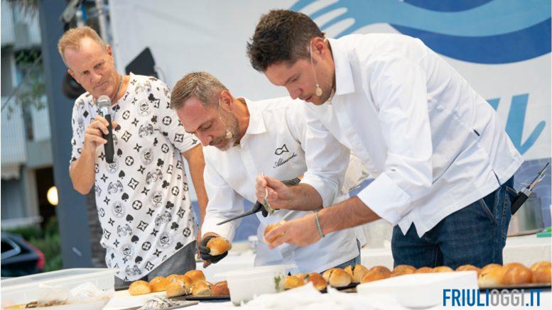 Il programma prevede un primo appuntamento alle ore 18.30 (venerdì) e 19.00 (sabato), durante il quale si daranno manforte ai fornelli due coppie di chef locali per produrre due ricette a quattro mani che uniscano i gusti del Mare Adriatico a quelli della cucina regionale. Venerdì 6 sarà il turno di Matteo Susan del Ristorante La Pigna di Lignano Riviera insieme a Edoardo Zanelli del Ristorante Balan di Lignano Sabbiadoro e di Federico Mariutti dell’Osteria Turlonia di Fiume Veneto con i fratelli Cepele di Mandi Parentesi Friulana di Lignano Sabbiadoro. Sabato 7, invece, l’abbinata sarà tra Rudi Santuz del The Taste & Al Bancut Restaurant dell’Hotel Monaco e Camillo Rispoli del Ristorante Voce del Mare, entrambi situati a Lignano Sabbiadoro, e di Andrea Natali del Ristorante Odio il Brodo di Trieste con Riccardo e Mattia Vacca di Ricky Hostaria di Lignano Pineta.