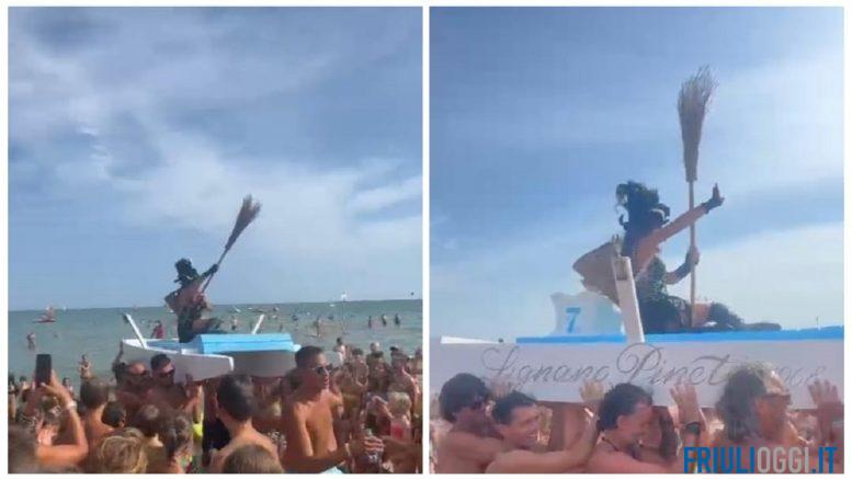 Anche quest’anno l’ufficio 7 Bis di Lignano Pineta lascia sgomenti i bagnanti grazie alla rappresentazione della ‘befana di Ferragosto’. Il 15 agosto infatti, dal mare a bordo di un pattino anni ’60 dal profondo valore affettivo e trasportata da giovani volenterosi e divertiti, si fa largo tra la folla un’unusual befana con tanto di stivali, cappello e top retato sberluccicante che porta con sé tanti doni per grandi e piccini.
