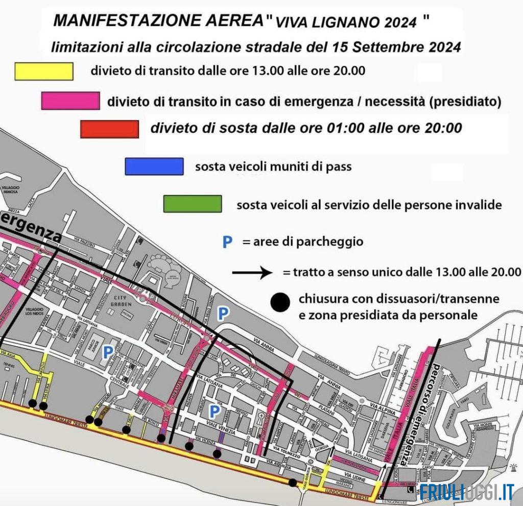 Al fine di garantire la pubblica sicurezza e permettere il regolare svolgimento dell’evento, si rendono necessarie anche alcune modifiche viabilistiche: dall’1 alle 20 di domenica, divieto di sosta permanente, con rimozione dei veicoli presenti, Lungomare Trieste, Via Sabbiadoro, nel tratto compreso tra il Lungomare Trieste ed il viale Centrale, viale Italia, nel tratto compreso tra via Udine ed il Lungomare Trieste, via Miramare, nel tratto compreso tra via del Bosco ed il lungomare Trieste (a esclusione dei veicoli muniti di apposito pass rilasciato dal Settore Sviluppo Socio-Turistico), via Adriatica, nel tratto compreso tra il Lungomare Trieste e via Vicenza (a esclusione dei veicoli muniti di apposito pass rilasciato dal Settore Sviluppo Socio-Turistico, via Marina, nel tratto compreso tra il Lungomare Trieste e viale Venezia (a esclusione dei veicoli muniti di pass), via Lilienfeld, nel tratto compreso tra via del Bosco ed il Lungomare Trieste (ad esclusione dei veicoli delle persone diversamente abili, munite del prescritto contrassegno).