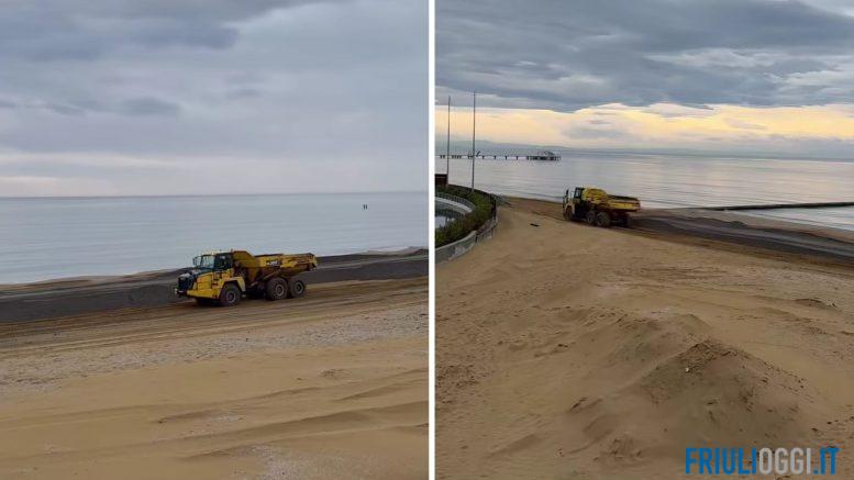 Completato l’intervento a Riviera (nelle aree più vicine al fiume Tagliamento, è già iniziato l’allestimento degli ombrelloni), le ruspe si sono ora spostate a Pineta, dove la sabbia viene distribuita lungo l’arenile per compensare le erosioni invernali. Attualmente, i lavori interessano l’area davanti al pontile a mare.