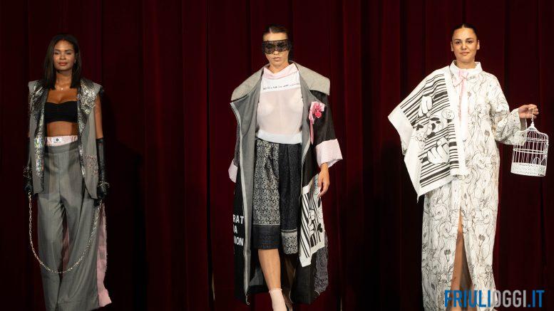 Federico Rossi, premiato dal Presidente del Consiglio Regionale Mauro Bordin, ha così presentato “Minuto 30”: “una collezione che gioca sul sentirsi intrappolati in gabbia, una gabbia non nostra, che attinge dal guardaroba maschile rendendolo più femminile, la collezione utilizza principalmente tessuti riciclati”.