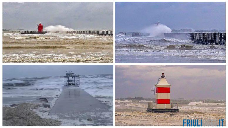 Continua il maltempo in Friuli: a Lignano questa mattina una violenta mareggiata si è abbattuta sulla spiaggia e sul molo del faro rosso.