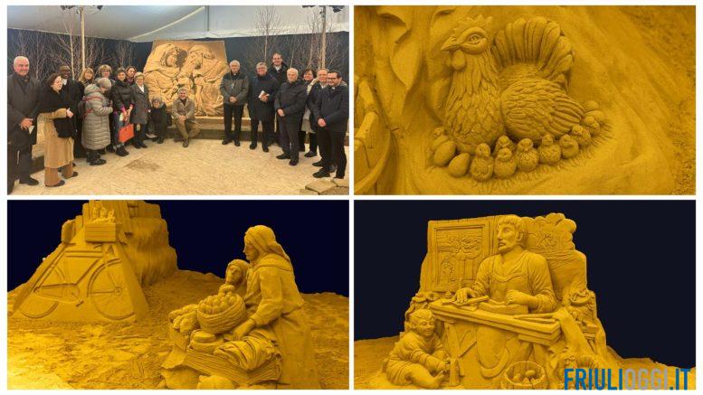 Questa edizione del Presepe ha visto anche il collegamento con la città di Gorizia, assieme a Nova Gorica, Capitale Europea della Cultura 2025. Proprio a Gorizia è stata allestita l’opera Sand Nativity – Beyond Borders: Roots on the Move, un’installazione in sabbia dono del Comune di Lignano Sabbiadoro, per celebrare l’importante appuntamento della Capitale Europea della Cultura, che prenderà il via ufficiale l’8 febbraio. La XXI edizione dell’opera è organizzata dalle Associazioni Lignano in Fiore ODV e Dome Aghe e Savalon d’Aur APS, in collaborazione con Comune di Lignano Sabbiadoro, Lignano Sabbiadoro Gestioni, Regione Friuli Venezia Giulia, Consorzio Lignano Holiday, Spiaggia Viva e con il fondamentale sostegno delle associazioni lignanesi.