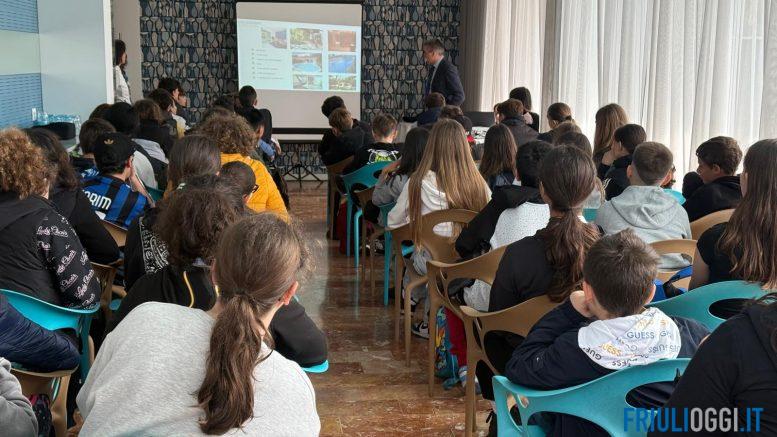 Terminata la visita naturalistica, la comitiva ha proseguito a piedi fino all’Hotel President, dove il presidente Ardito ha presentato agli studenti il percorso intrapreso dalla società per la redazione del bilancio di sostenibilità, con l’obiettivo di integrare in modo strutturato i principi ESG nella governance aziendale. Sono stati inoltre approfonditi i temi legati alle certificazioni ambientali ISO e GSCT ottenute, alla CER – Comunità Energetica Rinnovabile di Lignano e agli obiettivi ONU 2030 già raggiunti.