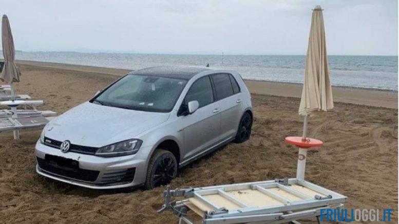 Un’auto è stata abbandonata sulla spiaggia di Lignano.